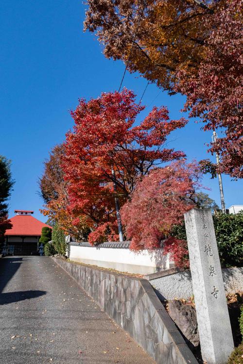 南浅川沿いの小高い丘にある龍泉寺。こぢんまりしたお寺ですが、もみじは驚くほど鮮やかでした。