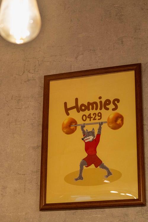 店内の壁にはオオカミをモチーフにしたアートが並び、落ち着いた雰囲気をつくっています。席の間隔もゆとりがあり、のんびり過ごせる居心地のよさがあります。