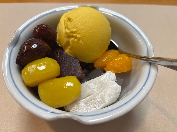 ちなみに、このときお雑煮のあとに食べたのは夏季限定の「冷やしクリーム白玉」の寒天トッピングだった。
