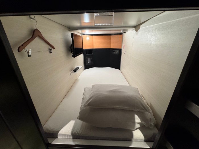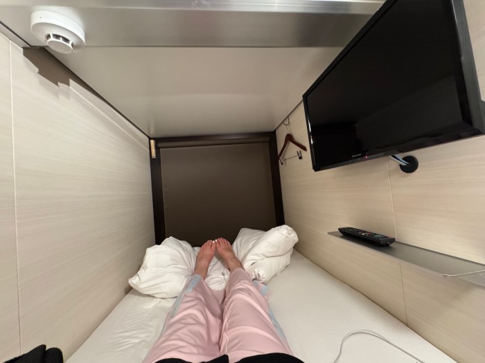 ロッカーに荷物を入れたら、座って過ごせる空間は自分のカプセルとラウンジのみ。ラウンジは結構狭めで、私がのぞいた時は定員オーバーにより入室不可であった。よって基本カプセルで過ごすことになるのだが、カプセル内は飲食禁止などの制限もある。あまり長時間くつろぐには適さないかもしれない。