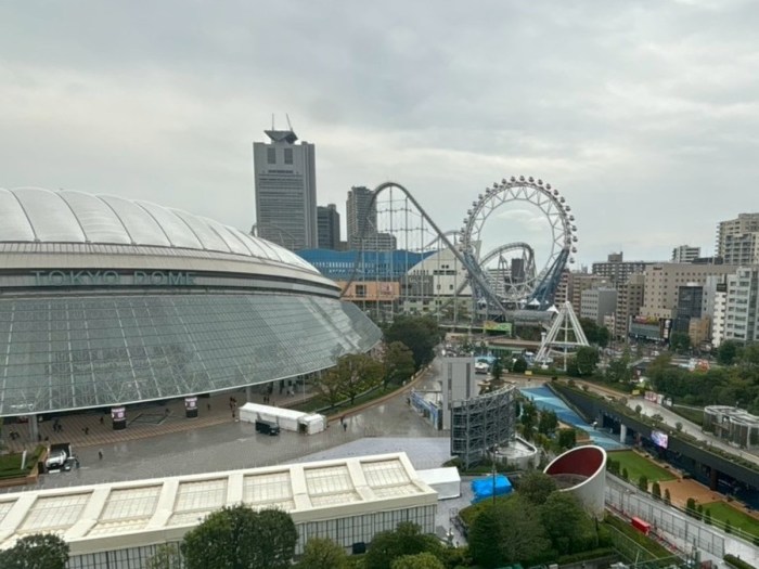 窓からは東京ドームや東京ドームシティの観覧車やジェットコースターがよく見える絶好のロケーション。