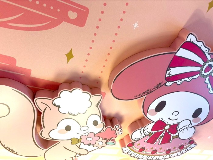 カーテンや壁紙、棚の扉まですべてにおいてで、マイメロディの世界観がそのまま再現されている。