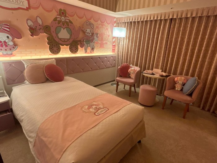 このコラボルームは海外からの宿泊客にも人気で、中にはマイメロディルームとクロミルームを連泊する人もいるという。(公式には連泊専用プランはないが、頑張って予約するらしい)