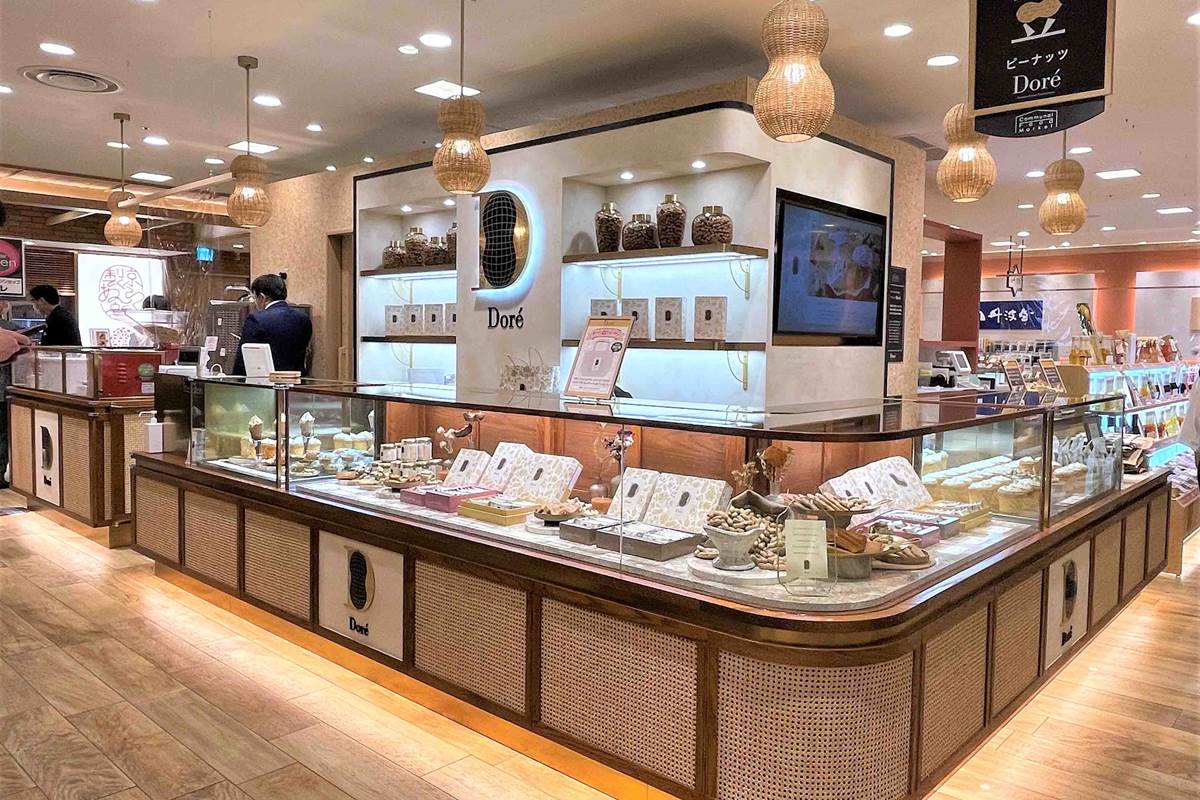 「Dore(ドレ)阪急うめだ店」(大阪府大阪市北区角田町)は、フランス語で“黄金”という意味の言葉を店名に冠したお店です。その名の通り、お店では黄金色に輝くピーナッツを使った香り高いフィナンシェやガレットなどさまざまなスイーツを販売。ふわっとクリーミーに仕上げたピーナッツクリームやピーナッツバターの量り売りもしています。