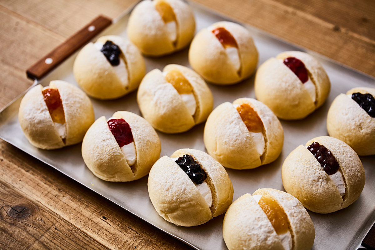 また「大阪梅田店」限定で、「アンジュの白パン」に大阪の手づくりジャムブランド「メルカートピッコロ」のジャムをたっぷり挟んだジャムパンが登場。「トウモロコシ」「カシス」「あまおう苺」「ブラッドオレンジ」「フルーツミックスのような」の5種類のフレーバーが揃います。