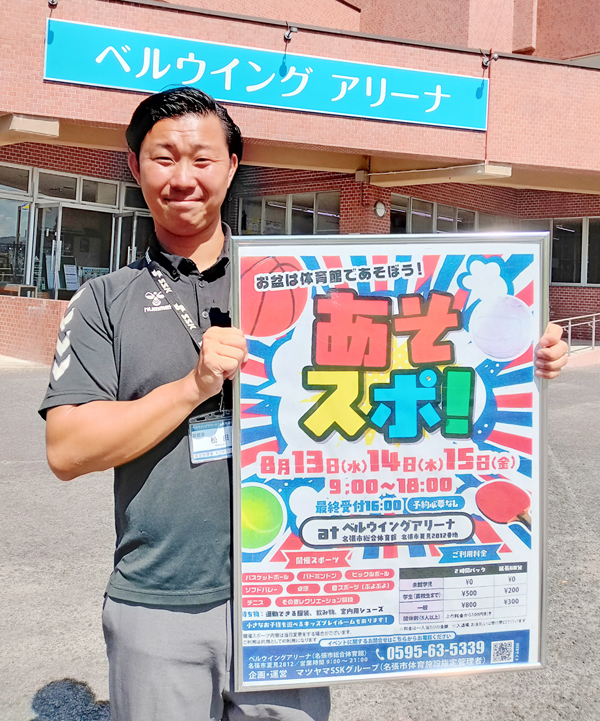 夏休みに家族や友人とスポーツ・eスポーツを楽しんでもらおうと、8月13、14、15日の3日間、三重県名張市夏見のベルウイングアリーナ(市総合体育館)で、さまざまな種目が体験できるイベント「お盆は体育館であそぼう! あそスポ!」が開かれる。申し込み不要。