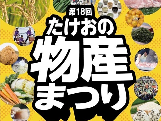 今年も武雄市内のおいしいものが一堂に会する『第18回たけおの物産まつり』が、11月15日(土)16日(日)の2日間開催されます!