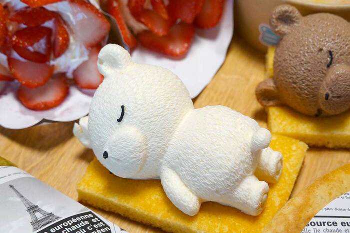 味はプレーンとチョコの2種類で、スポンジの上にムースでできたクマが乗っています。