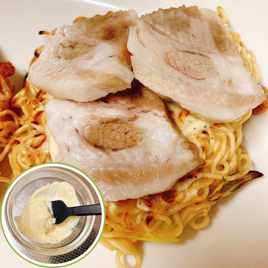 冷蔵庫に残っていた煮豚を、焼き豚の代わりに使います♡