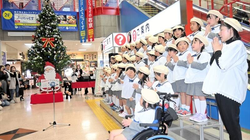 クリスマスツリーのショータイムは12時35分、15時5分、17時5分、18時5分、19時5分、19時45分(各回約3分)。12月25日まで。