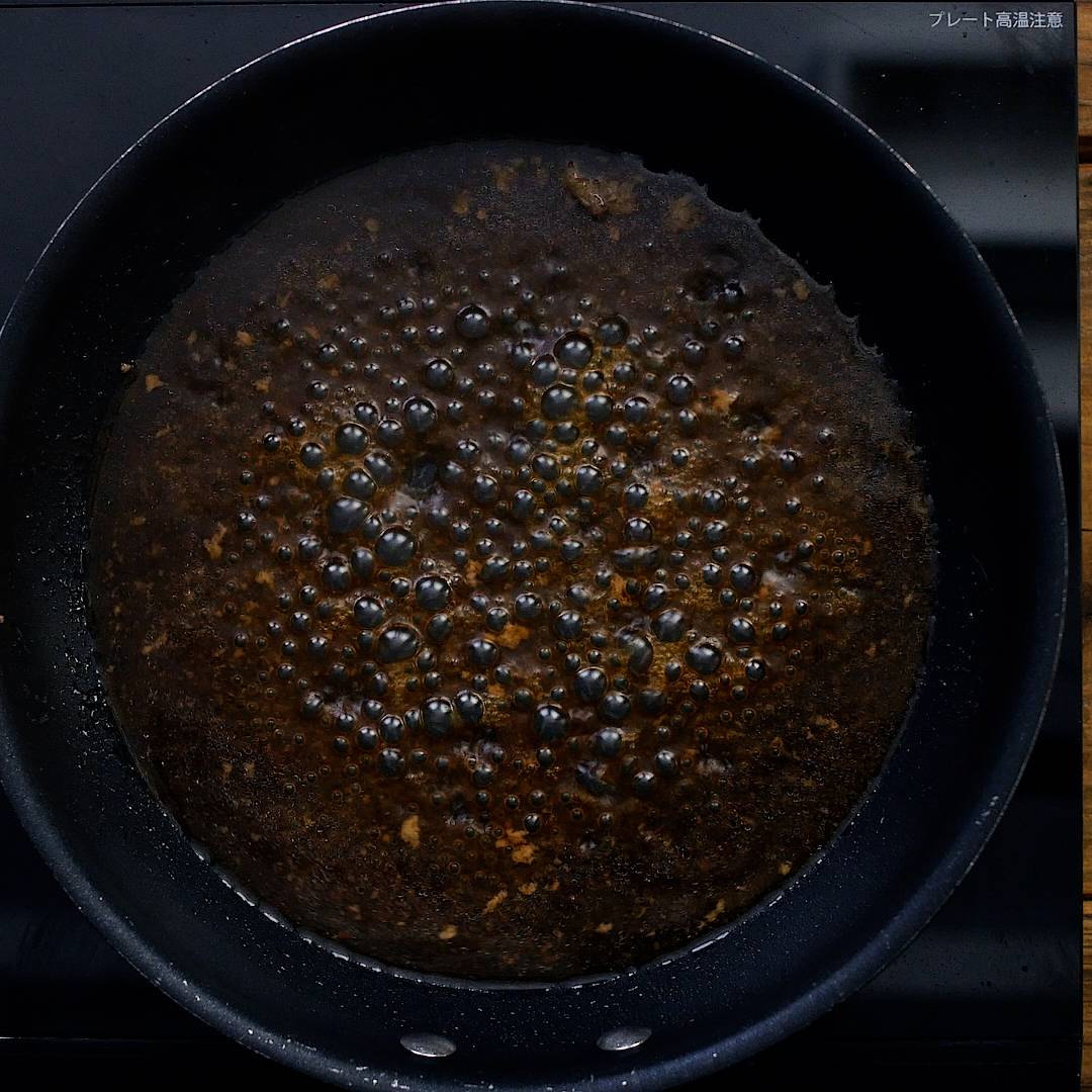5: ハンバーグを取り出し、 (a) の調味料を入れて煮詰めます。