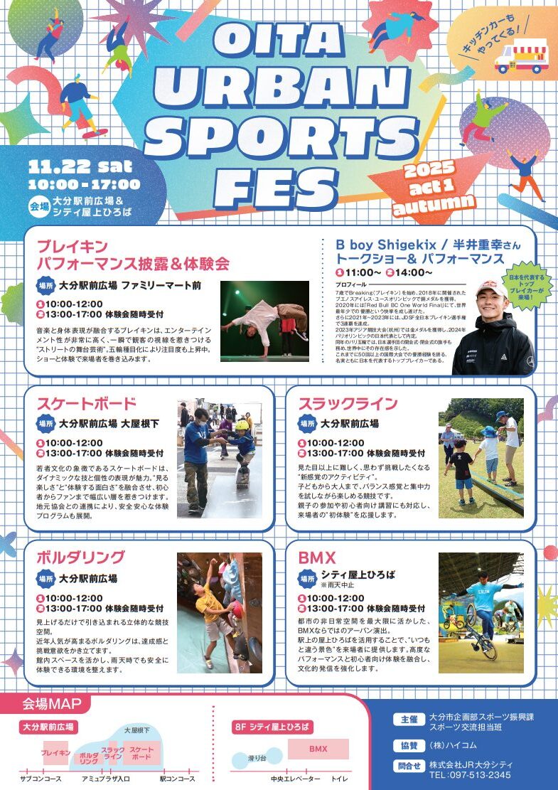 スペシャルゲストはShigekixさん!大分市で『OITA URBAN SPORTS FES 2025 act1 autumn』が開催されます
