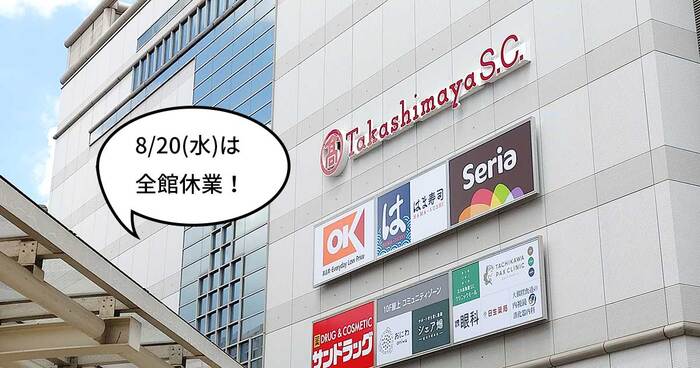 立川高島屋S.C.が、2025年8月20日(水)は全館休業するようです。