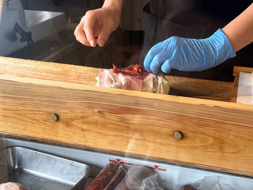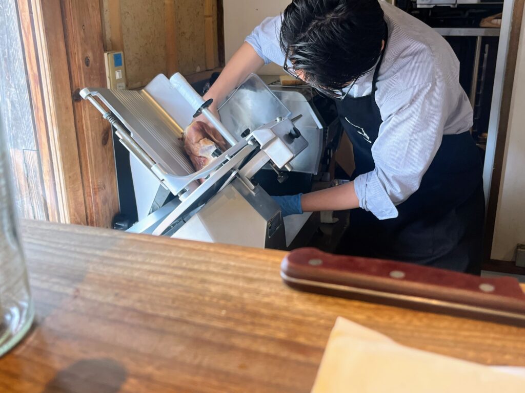 生ハムは乾燥しないようにと、オーダーを受けてから、一枚一枚丁寧にカットするため、ふわっとした柔らかさが見た目からも伝わります!