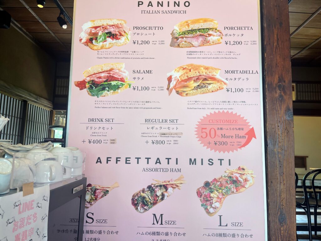 カジュアルにイタリアンを楽しめるようにと、メニューはイタリア発祥のサンドイッチ「パニーノ」と生ハムをベースにしたメニューが並びます。