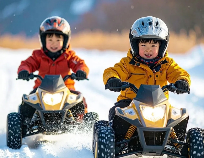 『Kidsバギー』は、雪上に作られた専用コースを、小型の4輪バギーで駆け抜けるアクティビティです。誰でも簡単に運転できて、7歳以上から、1人で乗れるサイズです。雪道を走る爽快感を感じて!