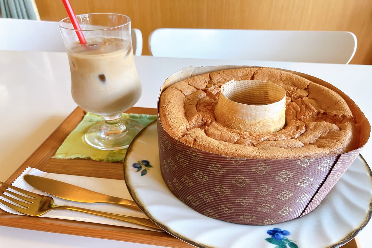 ドカン!と存在感ある「てぃーち」の手作りシフォンケーキ「そのまんまセット」