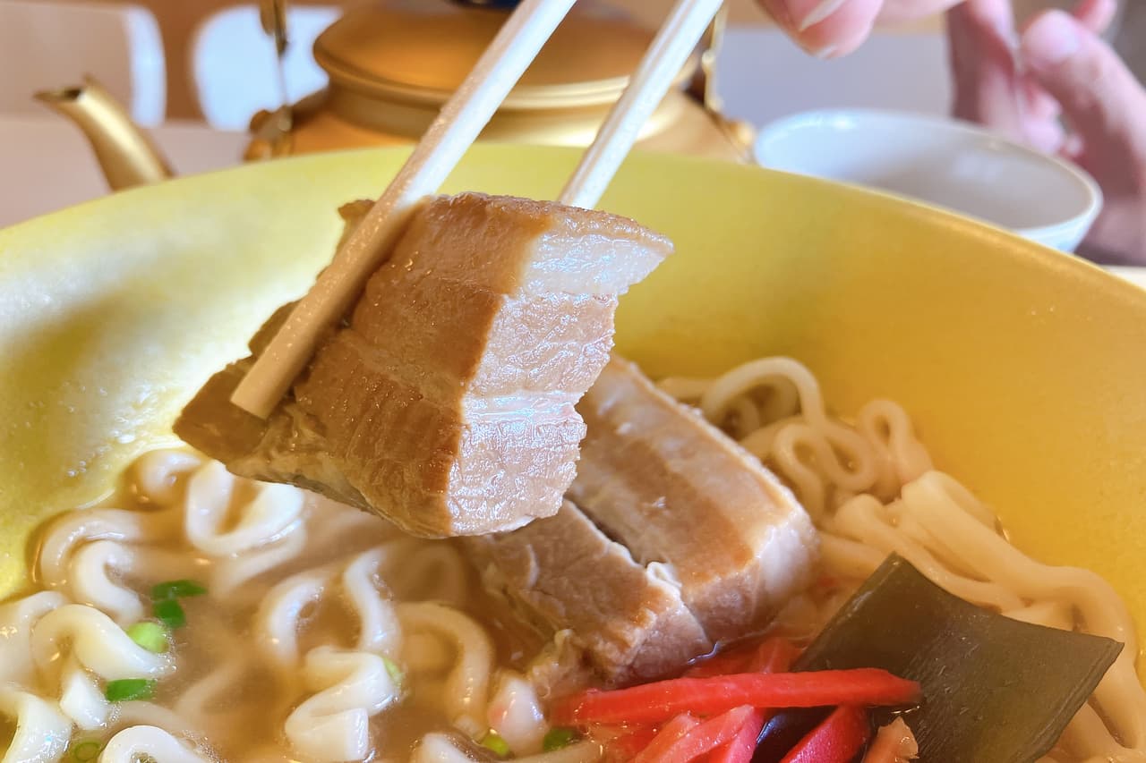 マンゴーで三枚肉煮込んじゃいました!「てぃーち」の楽しいアイデアがのった沖縄そば