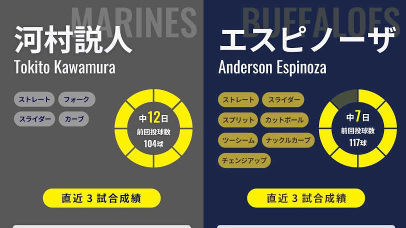 ロッテ河村説人が1216日ぶり復活勝利なるか、オリックス・エスピノーザは3連勝狙う