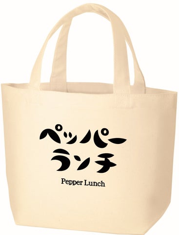 5,000円パックには、引換券に加え、ペッパーランチオリジナルデザインのトートバッグがセットになっています。このトートバッグは、普段使いしやすいデザインとサイズにこだわって制作されました。