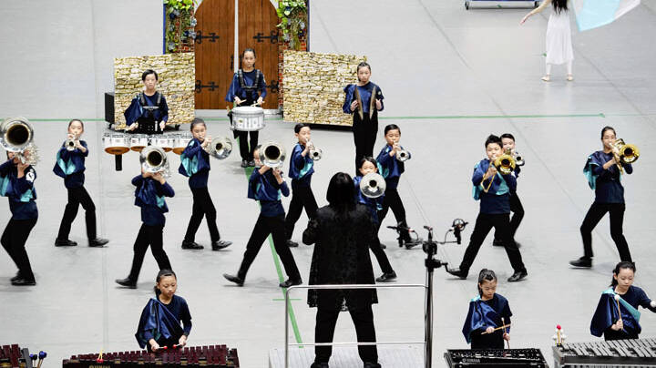 体育館に響く太鼓の音色。子どもからお年寄りまで、チーム一体となって全身全霊で演奏をしています。