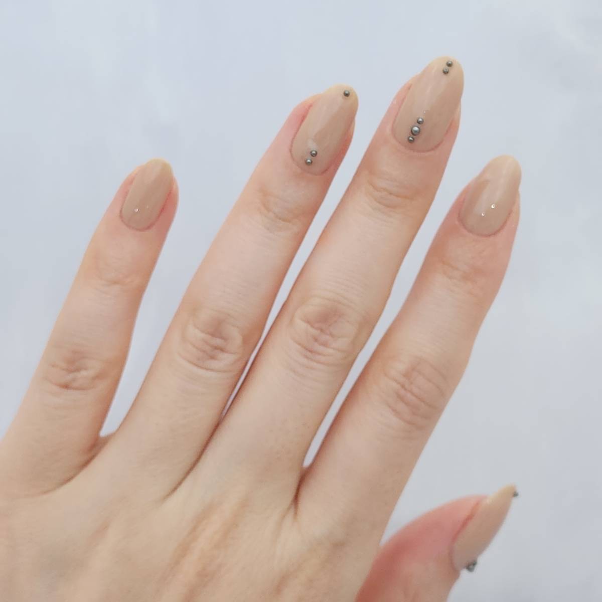 今回は、程よいアクセントのメタリックグレーパーツを使った「スタッズネイル」のやり方をご紹介します。
