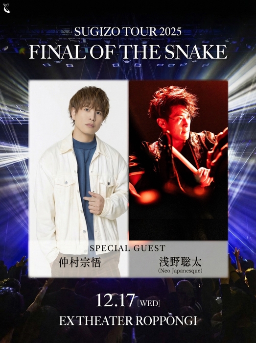 SUGIZOのツアー『SUGIZO GIG 2025 FINAL OF THE SNAKE』に、仲村宗悟、浅野聡太(Neo Japanesque)、葉月(lynch.)、藤重政孝がゲスト出演する。