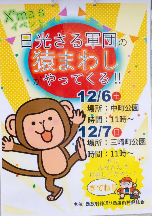 猿まわしは11:00スタート。翌日12月7日(日)は三崎町公園で見られます。