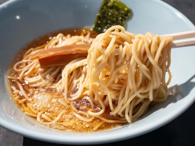麺はパツっと歯切れの良い中細ストレート。量は少なめなので2〜3杯食べる人も普通にいます。