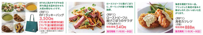 オープニング記念イベントでは、お店の人気商品「ローストビーフと揚げごぼうのサラダ」が特別価格に!さらに、サラダ やレトルト品が入ったお得な"ラッキーバッグ”なども数量限定で登場。