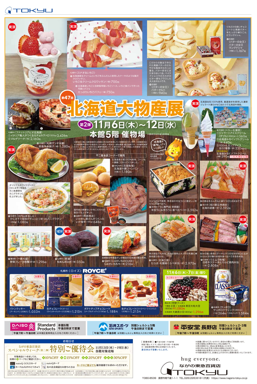 『北海道大物産展』第1弾:10月30日(木)~11月5日(水) 18:00まで/第2弾:11月6日(木)~11月12日(水) 17:00まで。イベント詳細へ