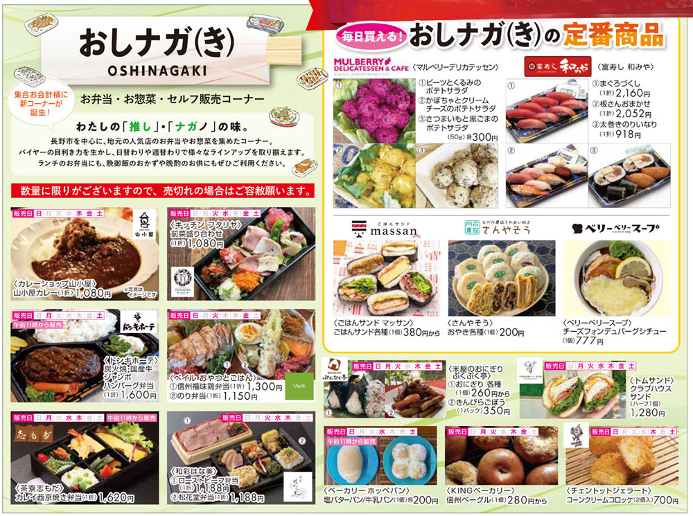 ◆バイヤー厳選!お弁当・お惣菜のセルフ販売コーナー「おしナガ(き)」
