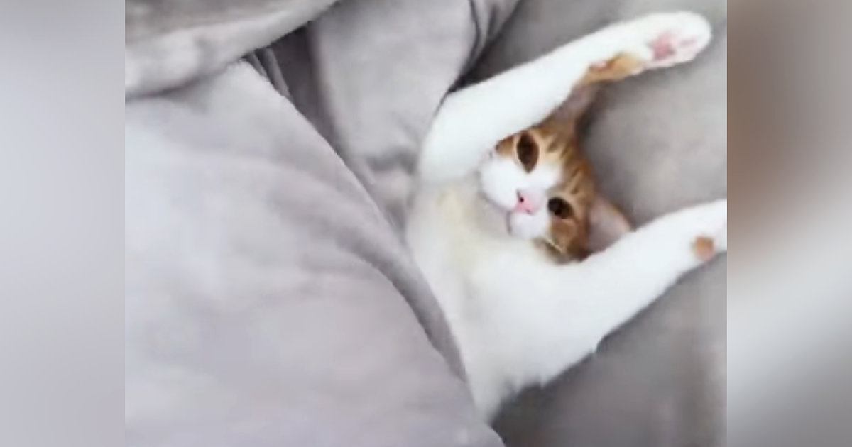 布団をめくってみたら、中にいたネコが…予想外の『可愛すぎるリアクション』が157万再生「寝起きは撮影NGだったかw」「悶絶級」