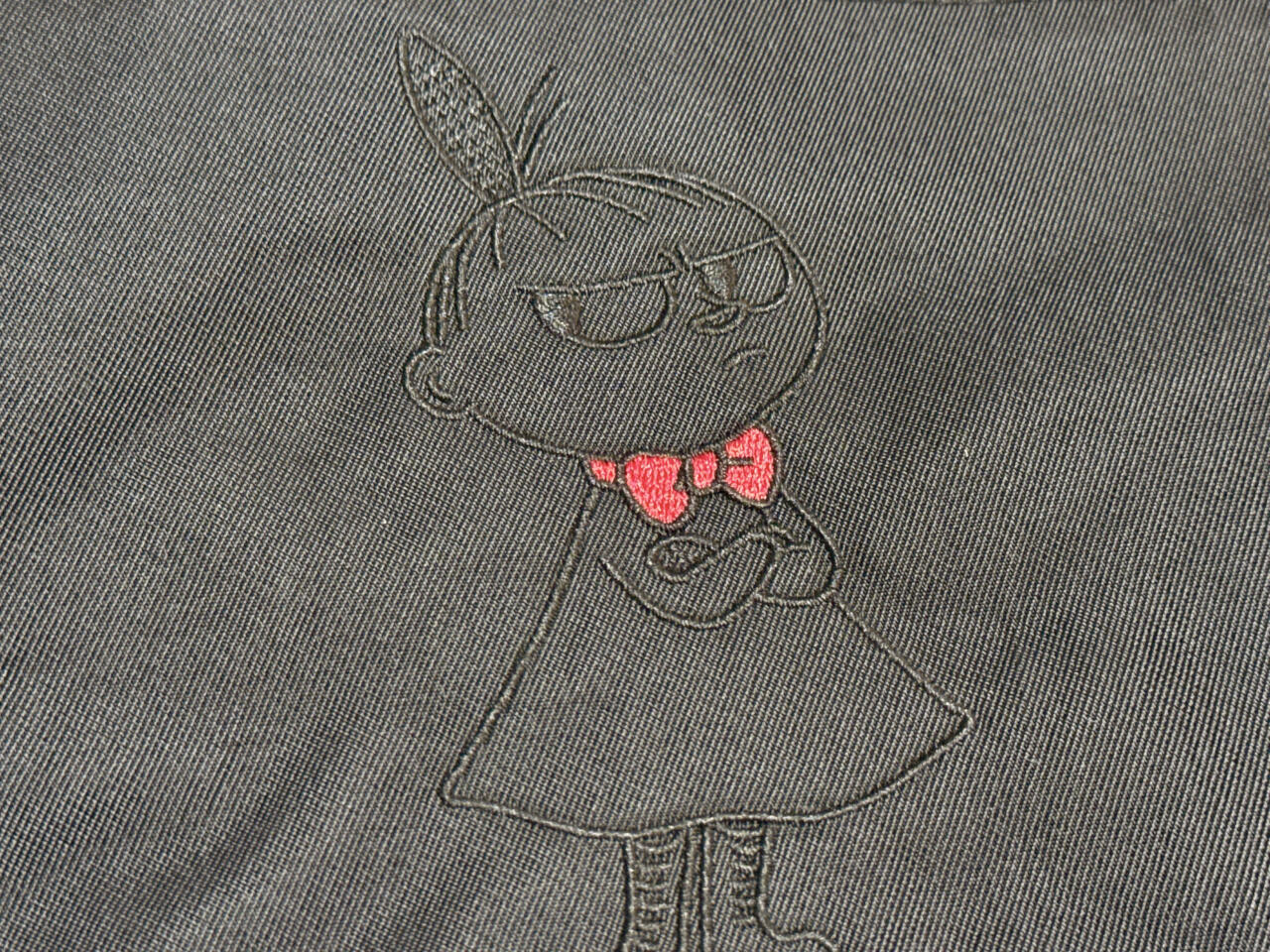 同色の刺繍なので、よく見るとリトルミイの刺繍入り、というさりげないデザイン。レッドのリボンがアクセントになってます!