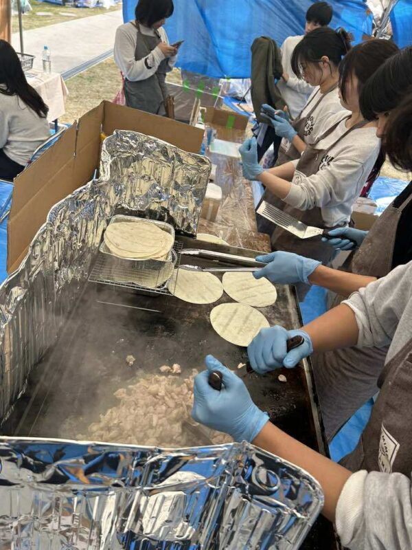 一方,3年生は宮崎県小林市,えびの市,高原町にまたがる西諸(にしもろ)地域と呼ばれるエリアを対象に,独自の商品を開発しようと意欲的なチャレンジをしていました。宮崎牛や野菜など,多様な食材がある中で,彼・彼女たちが目をつけたのはチキン南蛮。合宿では,エリアでも著名な食堂で販売されているチキン南蛮のタレを使った商品を使って企画を行い,そこで生まれたのが「チキン南蛮風トルティーヤ」。見たことも聞いたこともない商品を開発するとともに,学園祭の模擬店出店ルールを遵守するための試行錯誤をしてこの商品が生まれました。