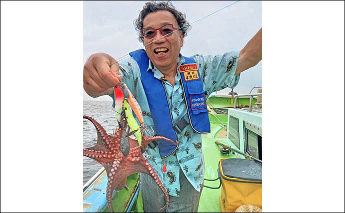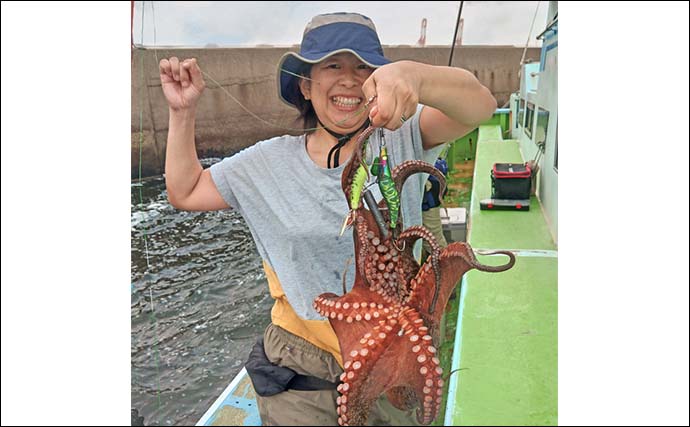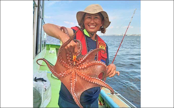 7月上旬、今シーズン絶好調の東京湾マダコを狙って、横浜山下橋の黒川本家から釣行。ラジオ釣り番組のリスナー香織さんら女性陣も多数参加し、船中は活気ある雰囲気に。開始早々から好反応が続き、良型を含む釣果が各所で上がった。なかでも香織さんは見事1.3kgの良型を仕留めた。