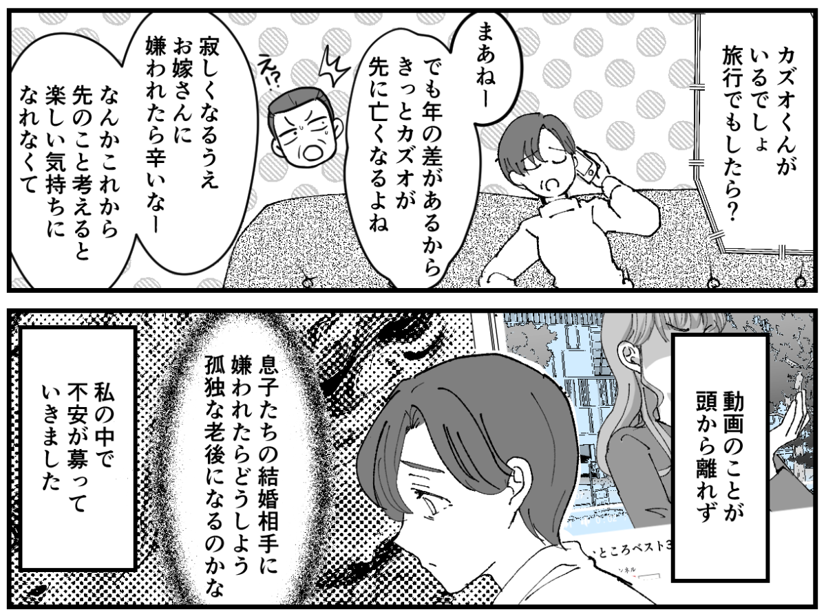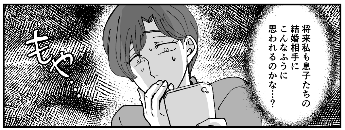 (将来、私も息子たちの結婚相手にこんなふうに……?)そんな不安が頭をよぎりました。 一度そんな動画を見てしまったせいか、その後も似たような投稿が次々と流れてきて、目につきます。 動画の内容を忘れることができず、後日実母との電話中にも不安を口に出してしまったのです。