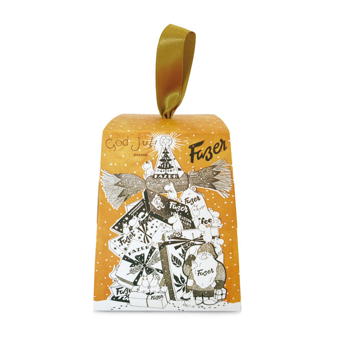 〈Fazer(チョコレート)〉 。フィンランドで大人気のチョコレートブランド〈FAZER(ファッツェル)〉と〈MOOMIN〉のクリスマス限定コラボレーション商品として、1950年代にムーミンの作者トーベ・ヤンソンが描いたパッケージが登場。