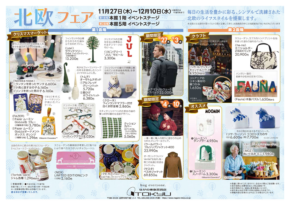 11/27(木)~12/10(水)『北欧フェア』北欧のライフスタイルを感じる雑貨やお菓子などが集結!クリスマスにもぴったりなマーケットイベントが開催「ながの東急百貨店」@長野県長野市
