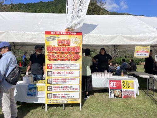 寒くなるといつも以上に恋しくなる、体を温めてくれる生姜。 冷や奴に、お刺身に、お寿司のガリに、素麺や魚の煮物に…と大活躍してくれますが、私、生姜が大好物なのです! 熊本で生姜の生産で有名な町といえば、八代市東陽町!熊本県全体の生姜生産量の約4割を東陽町が占めているのだそうで、生姜畑の棚田百選にも選ばれています。 こちらで年に一度、生姜の収穫を祝って、町を上げて開催されているのが「東陽しょうが祭」。 今年は10月26日(日)に開催されたしょうが祭、どんな様子だったのか、行ってきましたよー!