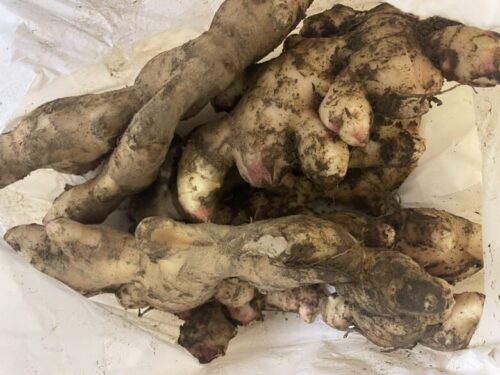 袋に巨大な土つき生姜がごろごろと2kg分入って、まさかの1,000円ぽっきりです。