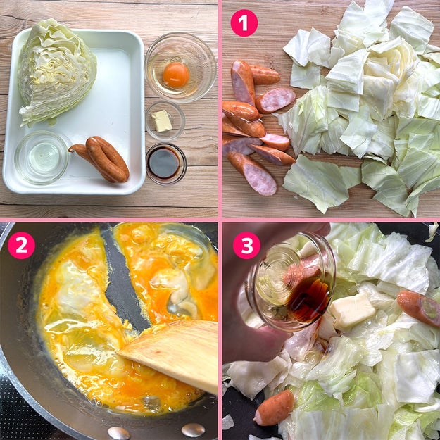 キャベツとウインナーと卵のバターしょうゆ炒め