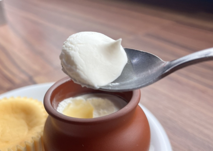 「魔法の壷プリン」は、陶器の小さな壺に三層仕立て。ふんわりクリーム、なめらかなカスタード、とろけるプリンが重なり、底には職人が手作業で仕上げたほろ苦いカラメル。優しい甘さと絶妙な苦味が織りなす、看板スイーツです。