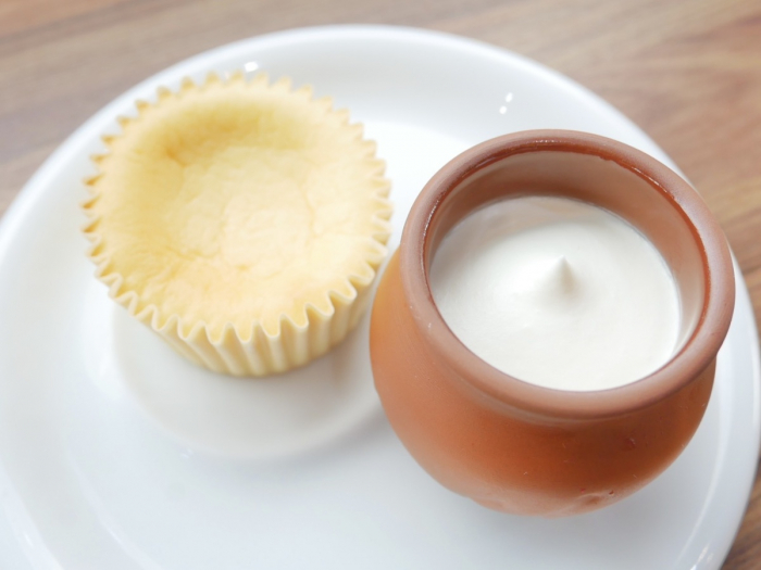 同店の人気スイーツ、壷プリンと半熟チーズケーキを両方味わえるのが魅力のセット!