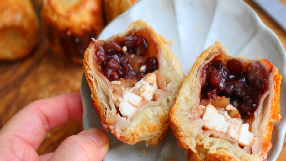 1: マスカットを白あんで包みます。