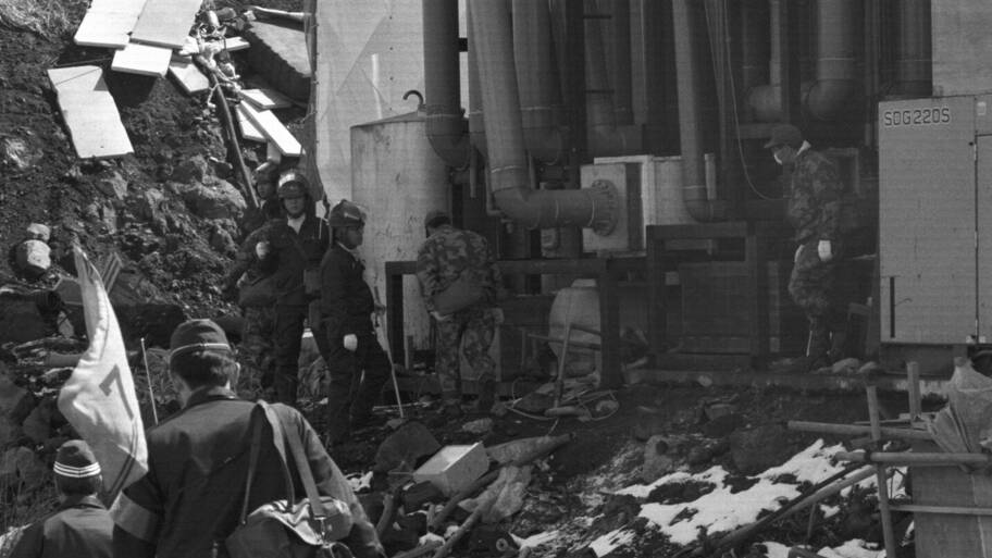 愛媛県愛南町での実験のようす。研究グループの材料メーカーの研究員が愛媛大学と協力して生分解性新素材ポリマーの実地試験を行なっていたところ、比較用に入れていた市販の釣りイトにも生分解の兆候があることを発見した