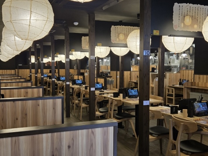 テーブルにはタッチパネルが設置されており、広い店内でスタッフを探すことなく、手軽に注文することができます。
