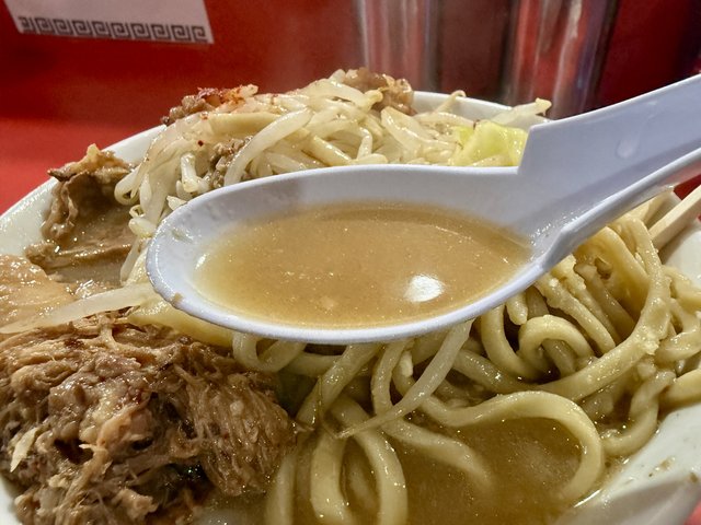 豚骨ベースの乳化したスープは、まろやかでクリーミー。とろみのある口当たりで、醤油の風味とほんのり甘みが感じられます。濃厚ながらもくどさのない仕上がりです。