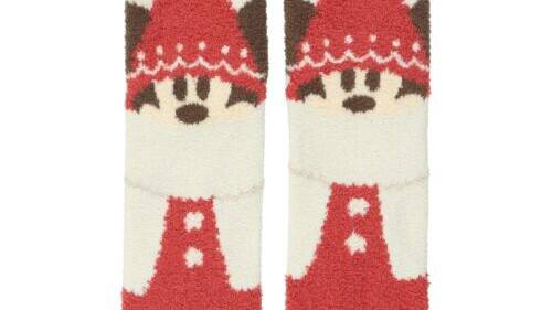 クリスマスコスチュームを着たミッキーとミニーのぬいぐるみ(5,500円)ぬいぐるみバッジ(2,800円)をはじめ、きんちゃく(900m円)ワッペンアクセサリー(1,000円)ポストカードセット(600円)などが登場します。