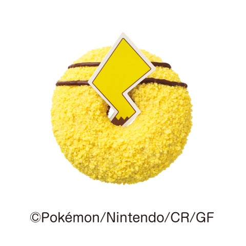 ふんわり食感のシュー生地にホワイトチョコをコーティングし、ゴールデントッピングを重ねて線がけを施し、ピカチュウの背中を表現。ピカチュウのしっぽのピックが特徴です。「もふもふ ピカチュウ ドーナツ」との食感の違いも楽しめます。
